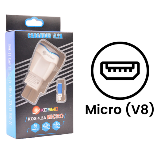 Ver todos los detallesEl cargador Kosmo 4.2A con cable integrado V8 (Micro USB) es ideal para quienes buscan una carga rápida y eficiente sin complicaciones. Su alta cap...